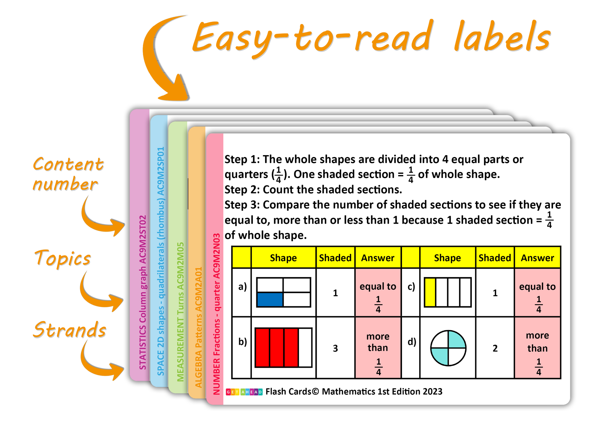The flash cards cover five content strands including Number, Algebra, Measurement, Space and Statistics.*